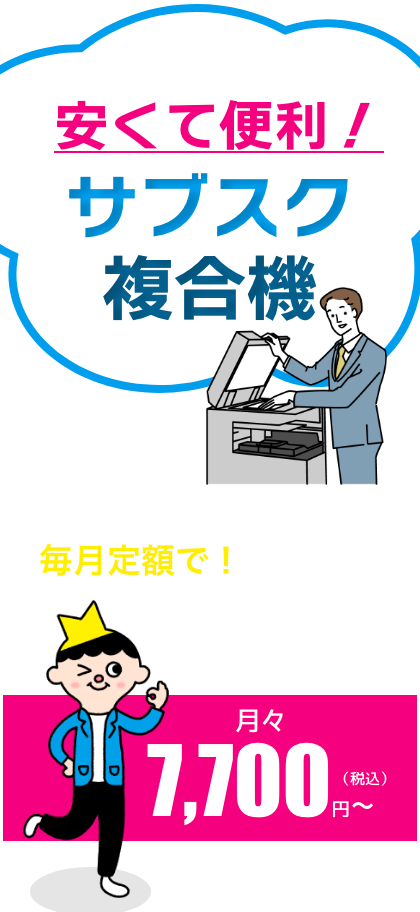コピーや出力、FAX、スキャン、データ保存。高機能複合機を毎月定額で貸与するサブスクレンタルプラン。