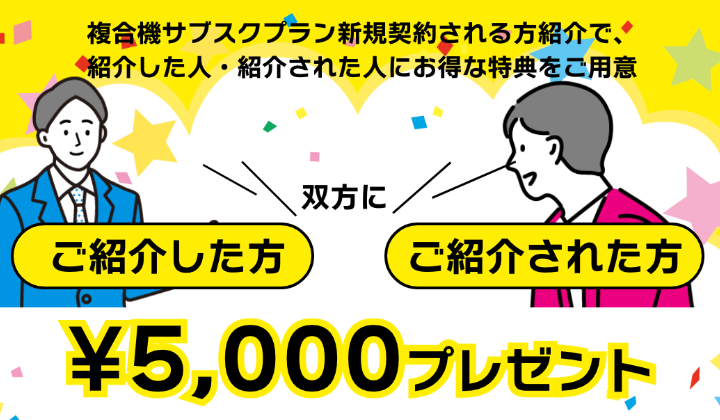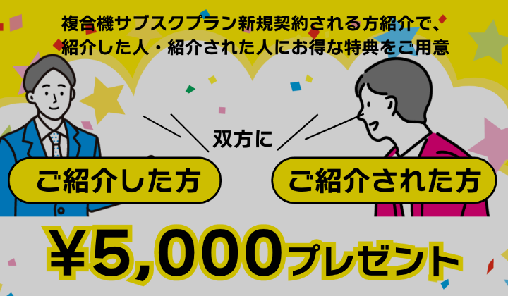 コピーや出力、FAX、スキャン、データ保存。高機能複合機を毎月定額で貸与するサブスクレンタルプラン。